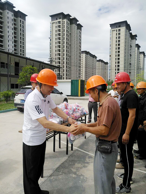 蔣金松副局長對項目人員和建筑工人們表示了親切的慰問和感謝,并要求項目管理人員堅持“以人為本”、“安全第一”的理念,努力改善工作環境,調整施工時間,避開中午高溫時間段施工,合理安排夏季施工作業計劃,提高防范意識,確保建設工程施工安全與職工身體健康兩不誤。